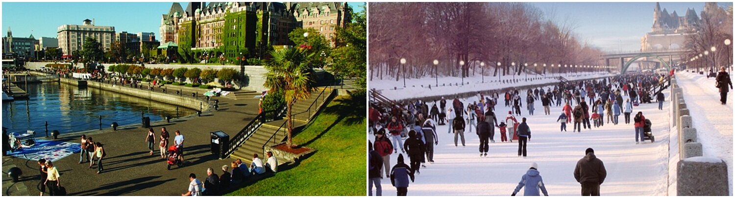 - The Rideau Canal: ระหว่างช่วงต่อของฤดูหนาว สู่ฤดูร้อน คลอง Rideau จะเปลี่ยนจากลานสเก็ตขนาดยาว 7.8 กิโลเมตร มาเป็นคลองแล่นเรือที่มีบรรกาศรอบๆที่สวยงามมาก ผู้คนมักมาที่นี่เพื่อเดินเล่น โรลเลอร์เบรด สเก็ต หรือขี่จักรยานริมตลิ่ง